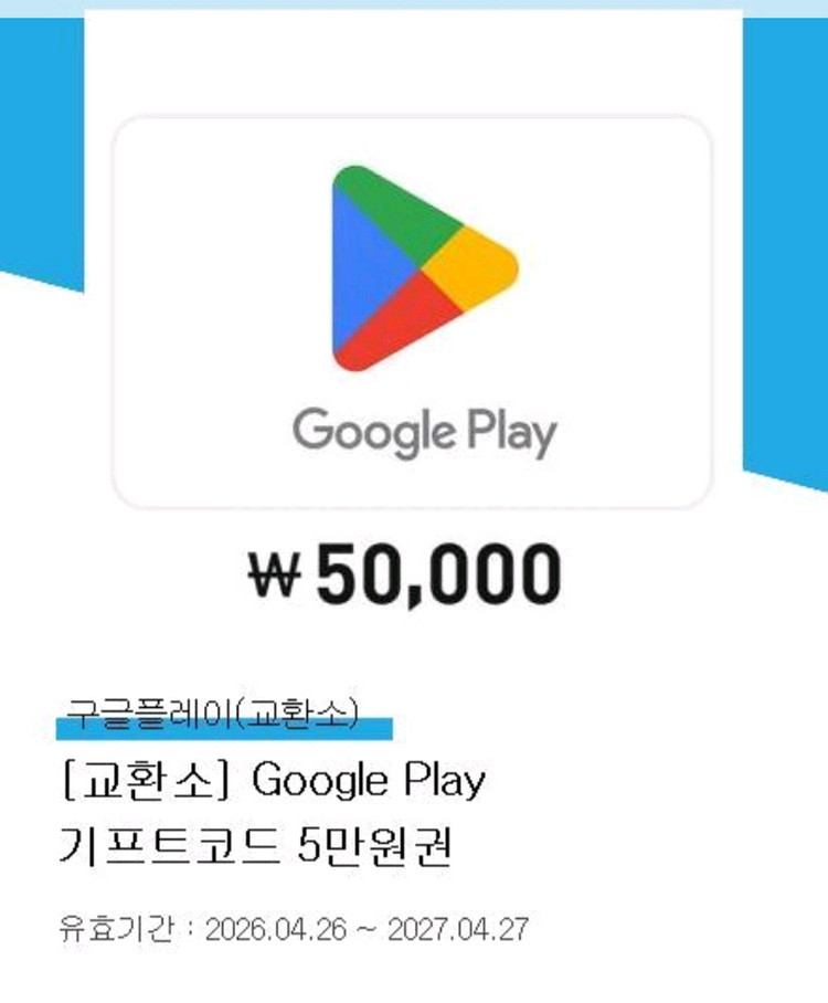 구글기프트 5만원권 4장입니다. 일괄 18.5에 판매합니다