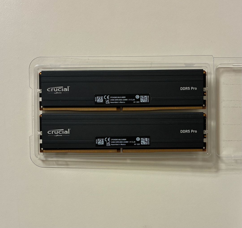 마이크론 DDR5 PRO 6000 24gbx2 48GB 판매합니다 테스트만 하고 보관중이던 제품입니다 안전거래도 가능하고 계좌거래(수수료 없음)도 가능합니다 안전거래시 채팅 없이 바로 결제하시면 되요