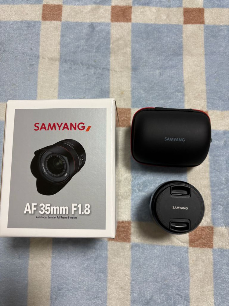 소니 E마운트용 삼양 35mm f1.8 풀프레임 렌즈 팝니다. 풀박스상태로 상태 A급이라 생각하고 찍힘이나 눌림같은 상처없이 약간의 생활기스만 있습니다. 펌웨어 0.4까지 업데이트 되어있어서 소니렌즈들과 비교해도 AF 성능 전혀 꿀리지 않습니다. 삼양 렌즈캡을 못찾아서 소니캡 드리고 UV필터도 같이 드립니다. A7C 바디 올렸는데 같이 구매하시면 네고드립니다.