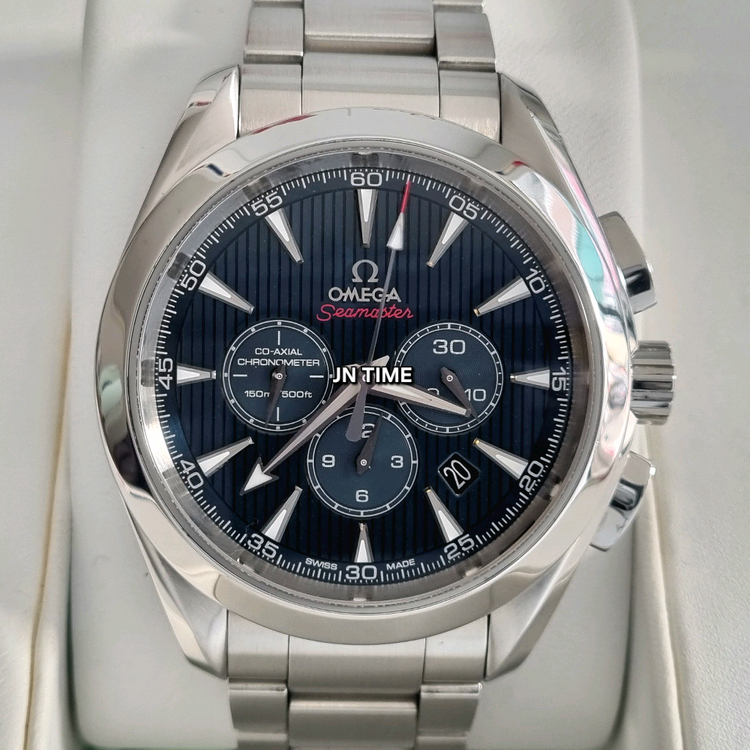이번에 소개시켜 드릴 시계는 아쿠아테라 크로노그래프 올림픽 한정판 모델로 1948년 런던 올림픽과 2012년 런던 올림픽을 연결짓는 상징적인 제품으로 제작된 씨마스터 아쿠아테라 코액시얼 "런던 2012" 리미티드 에디션은 위대한 도시에서 개최된 두 번의 역사적인 올림픽 경기를 기념하는 제품입니다. 44mm 사이즈의 스테인리스 스틸 케이스는 스테인리스 스틸 브레이슬릿과 아름답게 조화를 이루고 있습니다. 케이스백에는 2012 런던 올림픽의 엠블럼이 새겨져 있고 무브는 칼리버 3313으로 구동됩니다. 피게 무브 사용으로 20년된 중고도 400만원 넘게 거래되는 브로드애로우 무브가 cal.3303인데 여기에 co-axial 추가된 무브먼트인 cal.3313입니다. 참고로 cal.3301과 cal.3303 같은 피게 수정무브입니다만, 둘의 차이점은 cal.3303이 더 고급스런 피시닝이라는 차이가 있습니다. 프레드릭 피게 무브를 사용했던 브랜드는 대표적으로는 오데마 피게,바쉐론 콘스탄틴 인데 정확도와 내구성이 굉장히 우수해서 여러 브랜드에서 고가의 모델을 출시할땐 많이 사용하는 무브입니다. 2012년 출시 당시 일반형 아쿠아테라 크로노그래프 모델 리테일가가 780만원 이었고 올림픽 한정판 모델 리테일가는 900만원대 였습니다. 참고로 요즘 나왔다면 1400만원 정도 판매했을겁니다. 시계가 많은 분이 소장했던 시계라 실착 많지 않아 상태 아주 좋습니다. (2023년 12월 26일 오버홀 완료) 모델번호 - 522.10.44.50.03.001 사이즈 - 44mm 상태 - 새제품 대비 96% 구입시기 - 2012.07 구입한곳 - 국내백화점 리테일가 - 840만원 구성품 - 보증서,박스,여분링크,책자,명암 ## 2021년부터 현재까지 중고나라에서 셀러회원으로 활동 중인 JN TIME입니다. (네이버에 상호 검색하면 위치와 번호 나옴) 매장으로 오시면 매입된 제품은 카드결제나 현금영수증 가능합니다. (일부 위탁판매 제품은 제외) 단 택배는 선입금 택배거래만 가능합니다. (안전결제 불가!!) 그리고 판매 금액이 감정이나,수리,상품화 같은 비용이 포함되었어도 개인 간 판매되는 금액 수준이라 에누리는 어렵습니다. 교환이나 에누리 문의 주시면 따로 답장하지 않겠습니다. 제품 구입 관련 문의만 부탁드립니다.