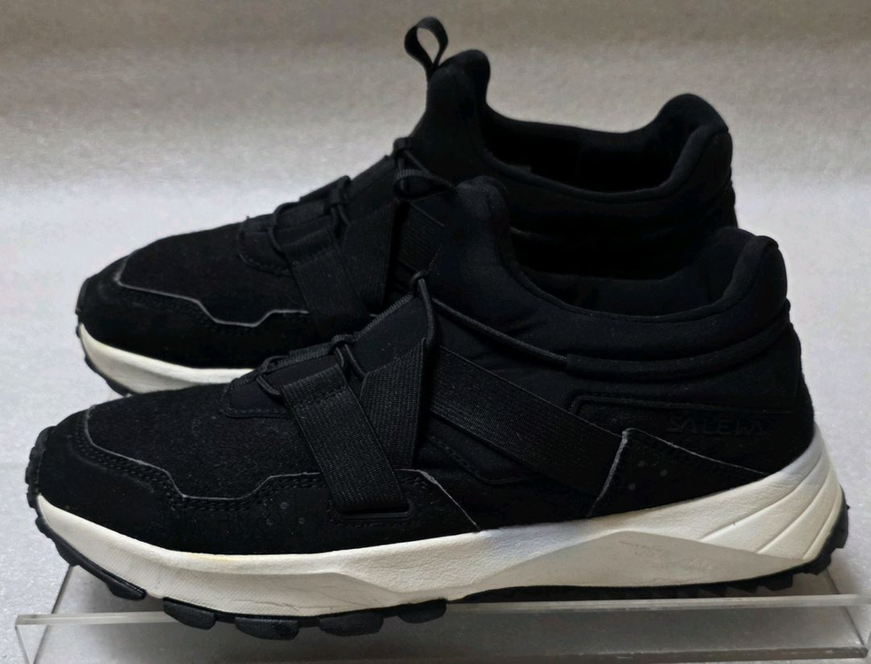살레와 SALEWA 정품입니다 믿음직하게 잘 만드는 독일 브랜드입니다 발목의 높이가 낮고 편안한 경등산화 트레킹화입니다 남성용 270 입니다 외피는 스플릿 가죽과 튼튼한 복합소재 입니다 내피는 고어텍스는 아니지만 방수되고 기능성 입니다 중창은 WING GAIT이고 충격을 흡수합니다 바닥창은 F X GRIP이고 접지력이 좋습니다 발등 윗 부분은 탄력있는 소재입니다 묶는 끈이 아니고 슬립온이라 그렇습니다 발등을 움켜쥐듯이 밀착감이 있습니다 사용감 적고 상태는 괜찮습니다 바닥포함 외부 상태는 상당히 좋습니다 중창 일부분에 작은 오염이 있습니다 심하지는 않고 착용에 전혀 문제 없습니다 바닥창 상태는 상당히 좋습니다
