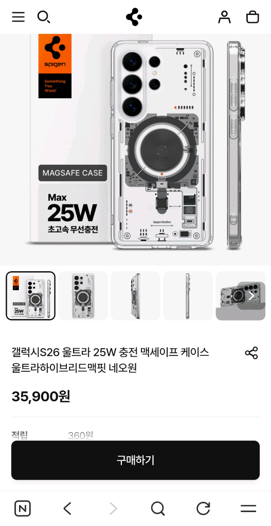 갤럭시S26 울트라 25W 충전 맥세이프 케이스 울트라하이브리드맥핏 네오원 편의점택배: 5,000원(반값택배 3,000원) 거의새거(1회 착용해봄) 네고 및 환불불가 직거래: 용인 성복역 및 수원 정자2동주민센터