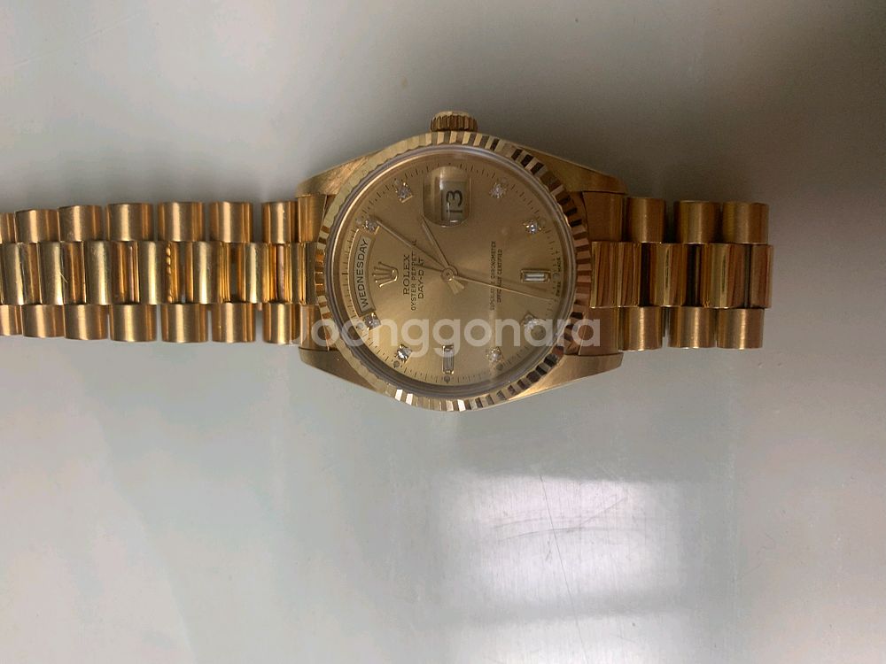 로렉스 18238 정품 판매 합니다 사진에서 보이는것 처럼 줄 늘어짐 거의 없고 상태 최상 입니다. 본품과 풀코 여분줄만 있습니다. 2개월전 오버홀과 테엽 교체 했습니다 오버홀 업체 보증서가 있고 금통 제품은 러그홀만 봐도 개품 구분이 되지만 꼭 정품 확인후 구매 하고 싶으신 분은 경남 양산 인근 인증 업체에서 확인 후 거래 가능 합니다. 인증금액은 구매자 부담, 가품일시 제가 부담 하고 거래파기 조건이면 좋겠네요. 구매 하시면 약 100만원 상당의 로렉스 이미와 워치와인더 같이 드립니다. 뚜껑 열어보지 않으면 가품 구분 힘든 최상급, 상태 또한 최상급 입니다 구매및 문의 사항은 01067871077로 연락 주세요
