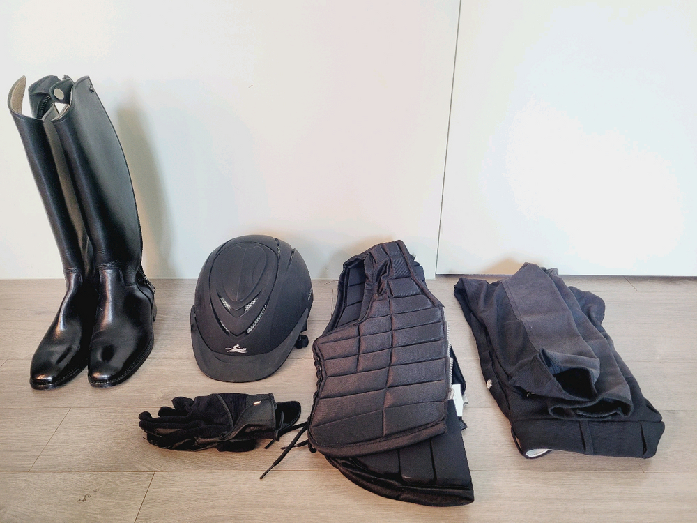 승마를 처음 즐기시는 분들을 위한 필수 용품 세트예요 헬멧, 승마바지, 부츠, 안전조끼, 장갑까지 모두 갖춰져 있어 바로 승마를 시작하실 수 있어요 사진에서 보이는 것처럼 깔끔하게 보관되어 있고 사용감이 거의 없습니다. 안전하고 즐거운 승마를 위한 완벽한 준비를 도와줄 거예요 신발사이즈 235, 바지사이즈 31(허벅지기준이요) 다 같이 사시면 가방도 같이 드리겠습니다.깔끔한 상태입니다.