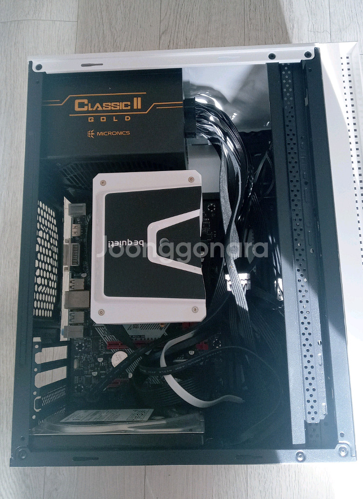 [파워하고 CPU쿨러 제외시, 8만원] 메인보드: B75-H(그래픽카드 내장형 Intel HD Graphics) CPU: i7-3770 램: DDR3 4G 하드: 250GB 5200RPM HDD 케이스: 미니 ITX 케이스 [파워하고 CPU쿨러 포함시 23만원] 파워: 마이크로닉스 Classic II 750W 80PLUS GOLD 230V EU 풀모듈러 (개별가격 9만원) CPU 쿨러: Be quiet 무소음 쿨러 (개별가격 6만원) 인터넷이나 사무용작업, 인강용으로 적합한 PC입니다, 사용을 거의 안해서 새것같은 상태입니다 기본적으로 HDD에 영문판 윈도우7하고 기본드라이브만 깔려있는 상태입니다, Nvme 및 SSD 지원하는 보드입니다 부산 반여동에서 직거래 및 타지역 택배거래 가능합니다