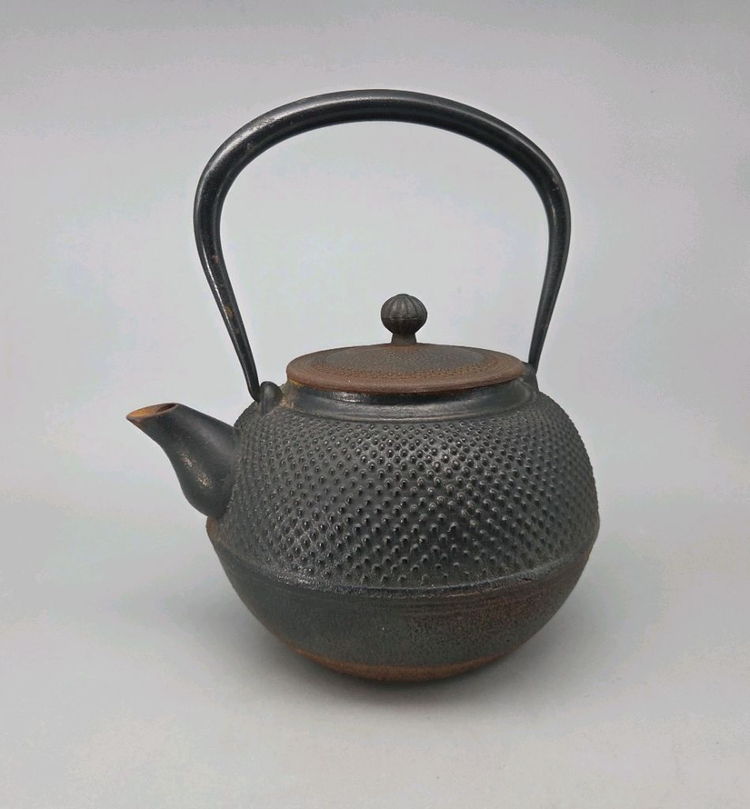 100년전후 일본에서 제작한 크기가 좋은 원형 돌기문 진품 철병입니다. 저부 정중앙에 주물로 만들었다는 원형의 표식이 보입니다. 중국의 가품 무쇠 철병에선 잘 보이지 않습니다. 뚜껑의 주위에 돌기문을 각하고 중앙엔 여의주를 말하는 보주형으로 제작하고 몸통상단엔 돌기문과 하단엔 약한 쪼이가 들어가 있습니다. 그리고 이 철병의 장점은 크기가 좋아서 다도를 하실때 물을 끓이는 용도로 최적화 되어있습니다. 손잡이는 고정인지 움직이진 않습니다. 전체적으로 상태가 양호하며 안쪽 녹소는 소금이나 차를 넣어 끌여 녹물이 나오지 않으면 바로 실사용 가능할듯 합니다. 크기는 폭 19 높이 손잡이 빼고 16 손잡이까지 24 정도입니다. 궁금한 점 있으시면 많은 문의 부탁드립니다. 감사합니다.