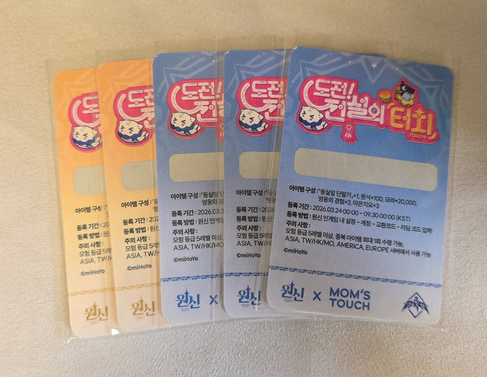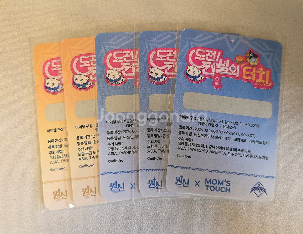 개인정보(거래정보)를 주고받는 행위는 사기에 노출될 수 있으므로 즉시 중고나라로 신고해 주세요원신 맘스터치 리딤코드만 판매합니다. 개당 10000원이고 입금 후 코드 보내드립니다. 총 5개 있습니다. 리딤코드 특성상 코드 전송 후 환불 불가능하다는점 양해바랍니다.