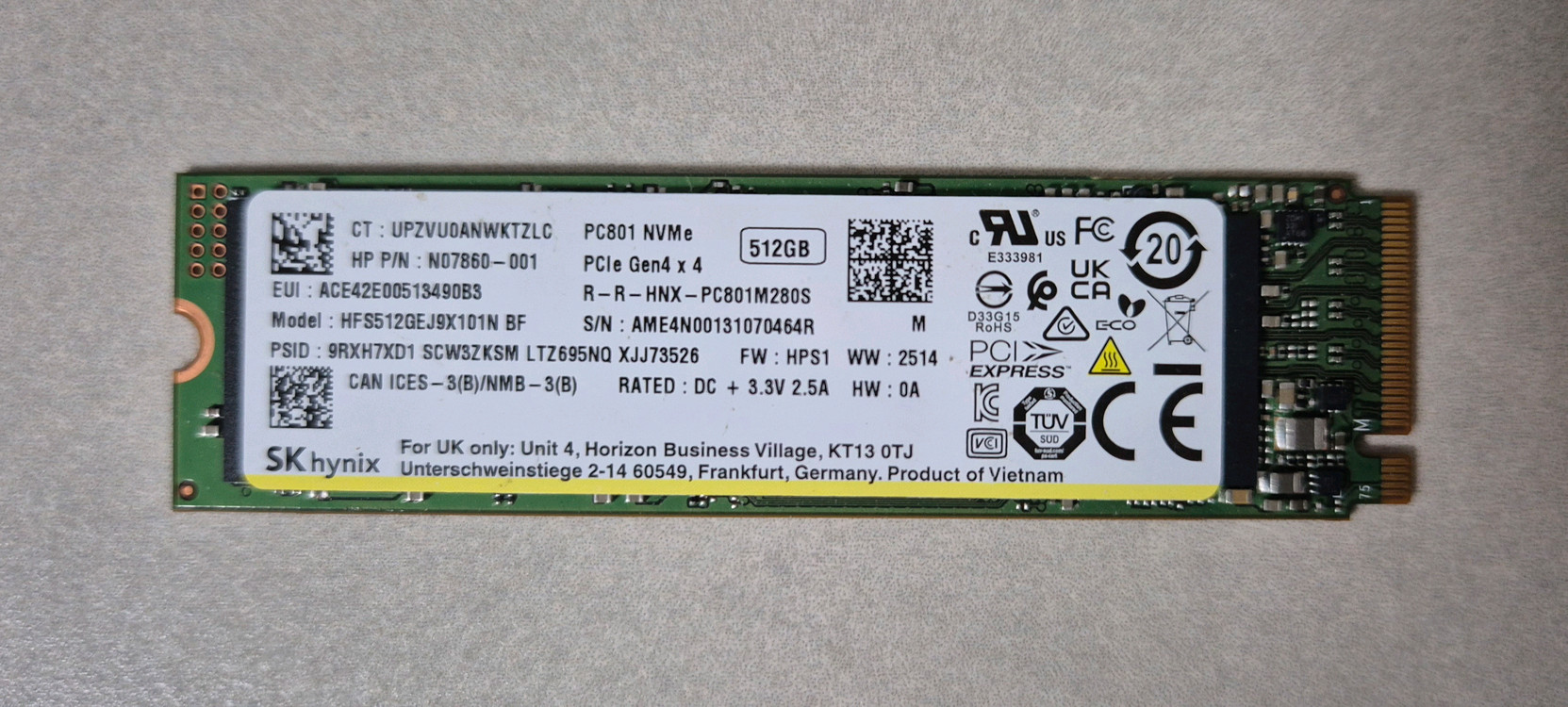 SK하이닉스 PC801 M.2 NVMe (512GB) SK하이닉스 Platinum P41 OEM 버젼 / 사양동일 PCIe4.0x4 (64GT/s)/DRAM 탑재 순차읽기: 7,000MB/s/순차쓰기: 4,700MB/s 윈도우설치 초기설정화면으로 전달드립니다 CrystalDiskinfo 참고 좋음 100% 정상동작 확인후 배송드리며, 중고거래 특성상 반품환불 불가입니다 네고문의는 받지 않고 있습니다 택배거래 가능합니다 안전결제 X 직거래 대구 경산 입니다
