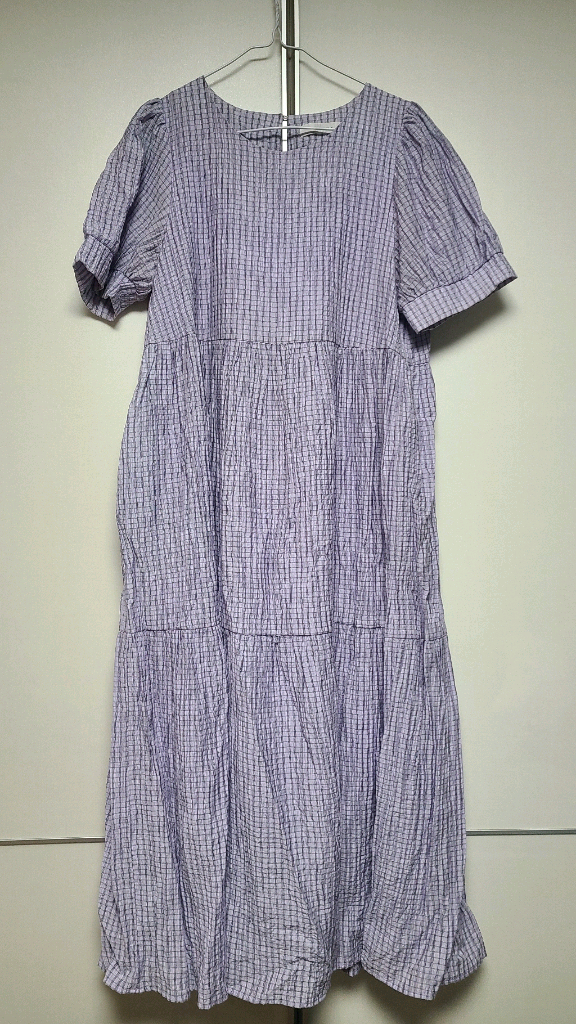 산뜻한 퍼플 컬러의 체크 패턴이 매력적인 셔링 원피스예요 사진에서 보이는 것처럼 편안하게 입기 좋은 디자인이랍니다 여름에 시원하게 입기 좋아요 데일리룩으로 활용하기 좋은 원피스랍니다