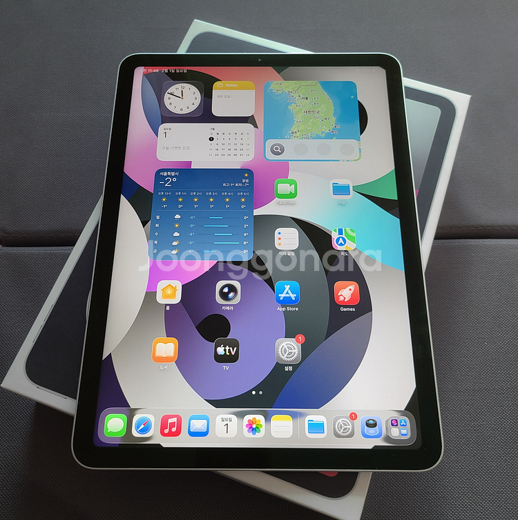 애플 아이패드 에어4 64기가 와이파이 실버 본체, 박스, 20W충전기, 케이블, 사진엔 없으나 케이스 구성품입니다. 외관상태 생활기스정도 외엔 준수한편이고 기능 모두 정상입니다. 배터리수명 88%입니다. 부산 광안리 직거래, 타지역 택배입니다.