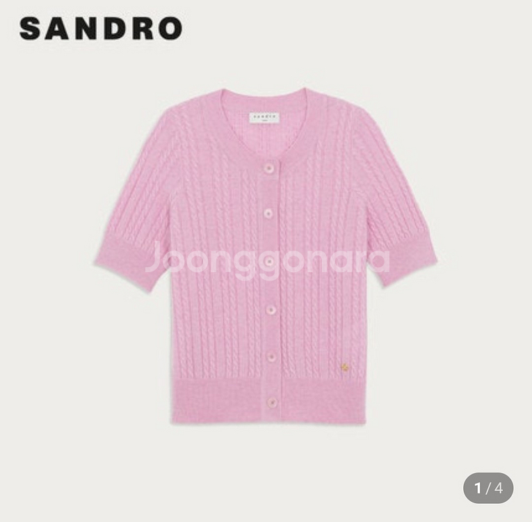 > 소재: 모 90% 캐시미어 10% > 상태: 최상 > 사이즈: 3사이즈 총장 51 가슴단면 41 어깨 30 팔길이 26 > 특징 부드러운 파스텔 핑크 컬러가 돋보이는 산드로 케이블 니트 가디건입니다. 세로로 들어간 케이블 짜임이 슬림한 실루엣을 연출해주며, 라운드넥과 버튼 디테일로 단정하면서도 여성스러운 분위기를 완성해줍니다. 울과 캐시미어 혼방 소재로 가볍고 포근한 착용감을 느낄 수 있으며, 반팔 디자인으로 간절기부터 초여름까지 활용도가 높은 아이템입니다. 단독 착용은 물론 원피스나 슬리브리스 위에 레이어드하기에도 좋아 다양한 스타일링이 가능하며, 고급스러운 텍스처와 컬러감으로 데일리룩에 포인트를 더해줍니다. 전체적으로 양호한 컨디션 유지된 제품입니다. 택배비 착불 혹은 3000원입니다. 중고라서 교환 환불 안되는점 이해부탁드립니다.