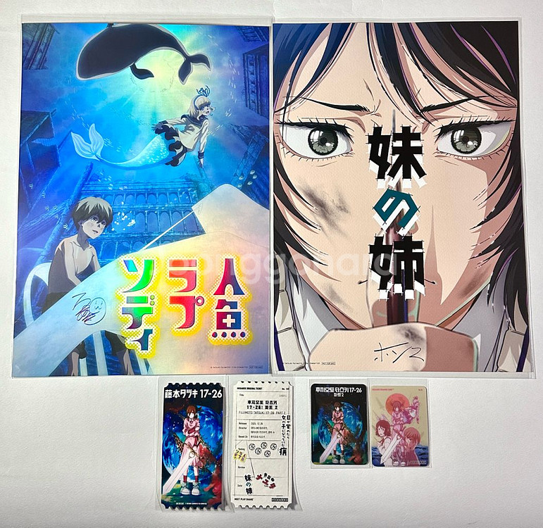 후지모토 타츠키 단편 아트그라피 포스터 B버전 -포스터 2장세트(인어 랩소디, 여동생의 언니) -나유타 오리지널 티켓&렌티큘러 드로잉카드 (오티,카드는 1장씩이며, 사진은 뒷면 예시용입니다) 모두 하자없이 상태좋은 양품이며, 봉투에서 꺼내지않고 암실보관중입니다! 포스터만 구매시 2.0 나유타 오티+드로잉카드 일괄시 3.0 A3 포스터 전용 박스+보드롱+에어캡으로 당일 안전하게 접수해드립니다 편하게 연락주세요☺️