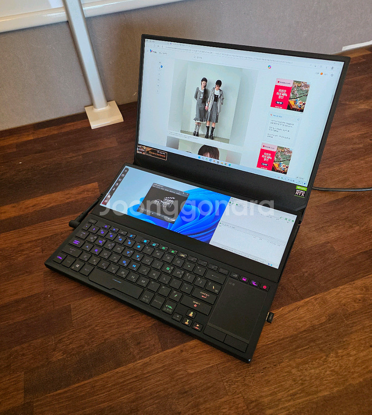 듀얼 스크린 노트북으로 한쪽은 일반 모니터, 다른 쪽은 터치스크린으로 활용 가능해요. RGB 백라이트 키보드와 함께 듀얼 디스플레이 기능을 사용할 수 있습니다. 상태 양호하고 정상 작동하는 제품입니다. ASUS ROG Zephyrus듀오 노트북 판매해요 15인치 메인 디스플레이와 보조 터치 디스플레이가 탑재되어 있어요 CPU-Z 정보에 따르면 RTX 3070 그래픽 카드와 32GB 메모리가 장착되어 있습니다 문서 작업, 영상 편집 등 멀티태스킹에 최적화된 노트북입니다 모델명 GX551QR 32GB RAM, RTX 3070, 라이젠 5900HX, 2TB SSD 추가로 확장해서 램과 하드용량이 충분합니다. 포맷완료했으며 가져가셔서 바로 사용 가능하실 수 있습니다.