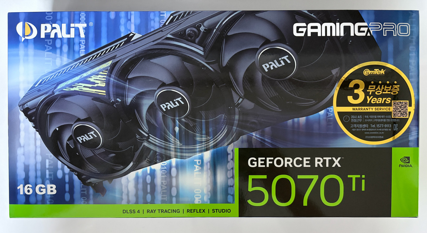 팰릿 5070ti 게이밍프로 -s 아니고 베이퍼챔버만 빠진 버전입니다 25년 5월 구매