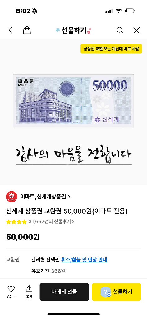 백화점에서 사용 가능한 5만원 상품권입니다