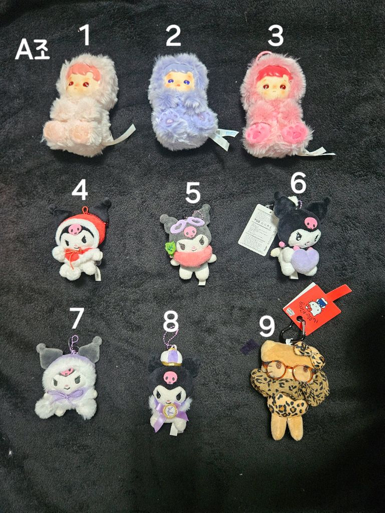 가방이나 파우치에 달고 다니기 좋아요 사진에서 보이는 그대로의 모습이에요 소장하고 싶어지는 매력적인 인형이랍니다 오염이나 문제있는것들은 없습니다. 사진에 a조~E조 까지있고 1~9번 번호 편하게 몇조 몇번 으로 문의주시면 감사하겠습니다^^. 2000~3000원까지 있습니다.