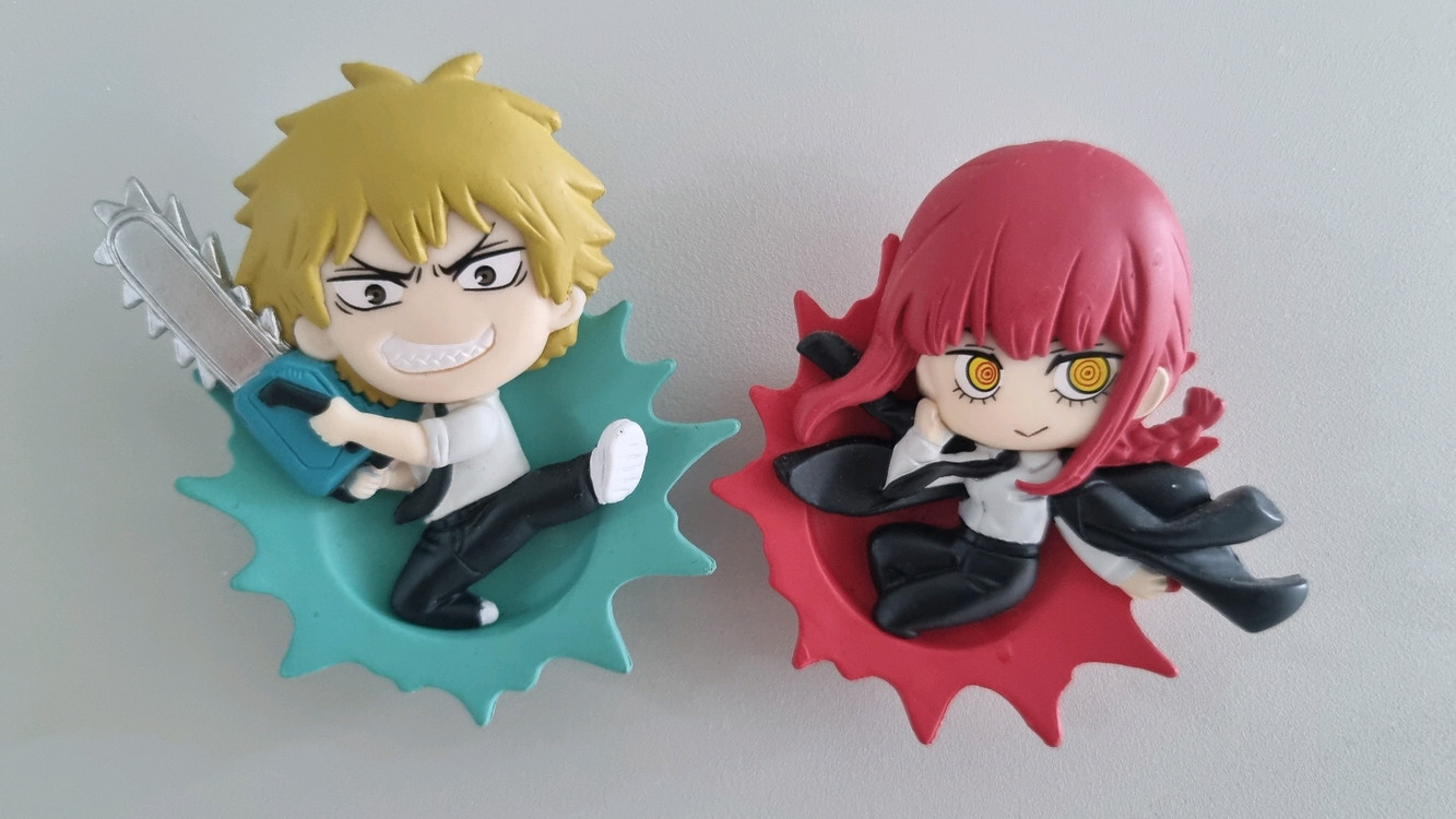 애니메이션 체인소맨의 인기 캐릭터 덴지와 마키마 자석 가챠 피규어 세트예요 사진 속 모습 그대로 귀엽게 나왔어요 소장 가치가 높은 제품이랍니다 체인소맨 팬이라면 놓칠 수 없는 아이템이에요 택배비 추가시 택배거래 가능 인덕원역 주변 직거래 가능