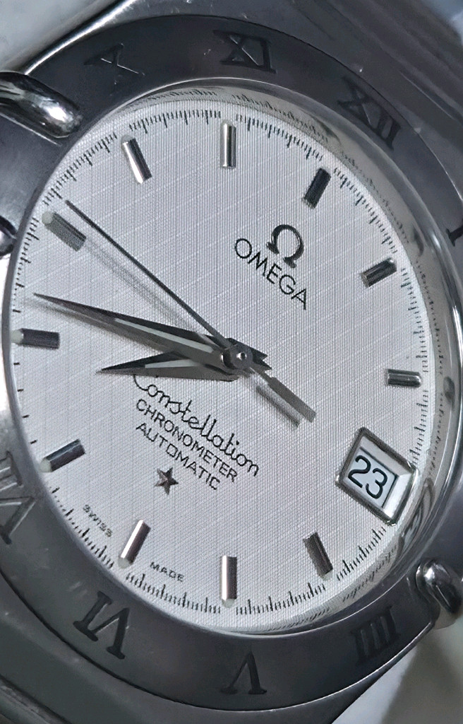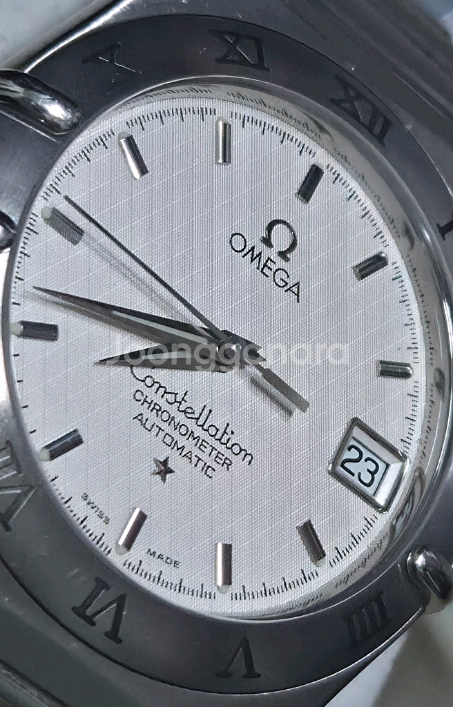 **오메가 컨스틸레이션 35.5(오토매틱)** ● 09년 국내백화점 구입/스템핑 ● 보증카드를 포함한 3장의 카드, 여분줄, 메뉴얼북등 풀박스 ● 크르노미터 인증된 내구성 좋기로 유명한 씨마스터300과 같은 칼리버 1120 무브먼트 ● 1년전 명장샵에서 오버홀 완료, 일오차 2초, 최상 컨디션(결제 영수증 O) ● 구입할때의 앞면/뒷면 바코드 스티커, 스펙 메달등 그대로 다 있음(사진 참고) 실착용 횟수 얼마 안되서 연한 잔기스 조금 외에는 외관 상태 깨끗하고 좋습니다. ※ 안전결제 가능하고 직거래 가능합니다.