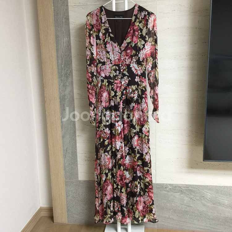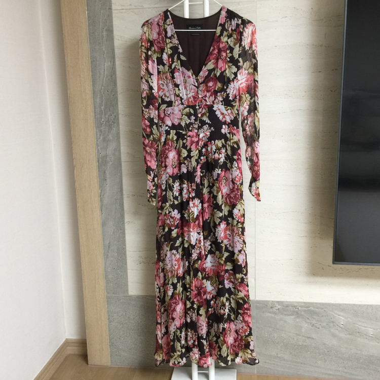 여성스러운 무드의 마시모두띠 롱 원피스입니다. 플로랄 패턴이 고급스럽고, 맥시 기장으로 우아한 느낌을 줍니다. 사이즈는 55이며, 특별한 날 입기 좋은 드레스입니다 사용감없이 깨끗한 상태예요 가슴단면 42 기장 135 일반3500원 반값2000원 입니다