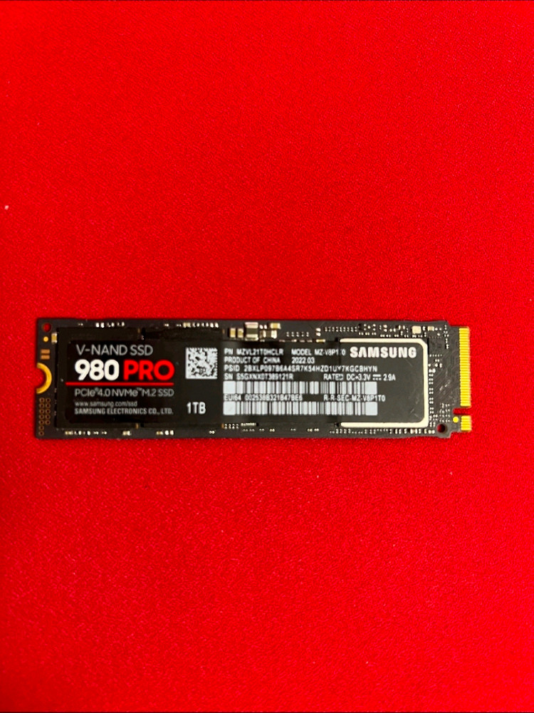 삼성의 고성능 NVMe SSD 1TB 모델입니다. 2022년 3월 제조품으로, 보증 기간이 2027년 3월까지 ✅ 제품 정보 모델명: MZ-V8P1T0 (Samsung 980 PRO 1TB) 제조일: 2022년 3월 보증기간: 2027년 3월까지 (AS 잔존) ✅ 거래 안내 직거래: 부천 상동역 5번 출구 (시간 협의) 택배: 제품값 선입금 + 배송비 착불
