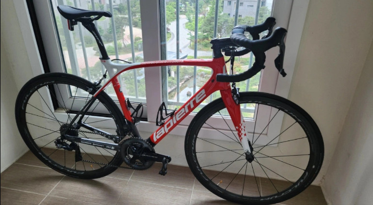 exo바이크에서 프레임 신품 구매하였고, 드래곤볼하여 조립한 모델입니다. 많이 타지않게되어 보관만 계속하다가 정리하기로 하였습니다. 항상 타고오면 닦아서 집안에 보관해서 전체적으로 깨끗합니다. 프레임 : 라피에르 젤리우스 SL 스위스(발레) 에디션 얼티메이트 사이즈 : M 구동계 삼점셋 : 듀라 9150 di2 (디플라이포함) 크랭크 : 듀라 9100 컴팩 크랭크암 172.5 앞,뒤 브레이크 : 듀라 9000 핸들바 : 에스웍 에어로플라이 라이저바 체인 : 울테 체인 스템 : zipp 서비스코스 싯포 : zipp sl speed 카본 싯포 셋백 27.2 안장 : 스페셜라이즈드 파워안장 페달 : HT PK01 카본클릿 (룩 호환) 휠셋 : 펄크럼 레이싱 카본 콰트로 40mm 타이어 : 슈발베 원 프로