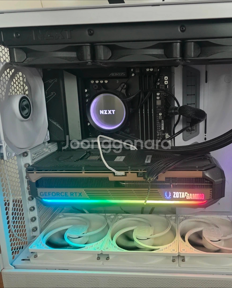 CPU AMD 7950X 메인보드 기가바이트 X670 AORUS ELITE AX 메모리 삼성 4800 DDR5 64GB SSD 삼성전자 PM9A1 M.2 NVMe 벌크 1TB 그래픽카드 ZOTAC GAMING 지포스 RTX 5080 AMP EXTREME INFINITY 파워 시소닉 FOCUS GOLD GX-1000 풀모듈러 케이스 리안리 LANCOOL III (화이트) 쿨러 NZXT Kraken X73 블랙 쿨링팬 arctic p12 pwm 윈도우는 별도 입니다. 설치하고 드라이버는 잡아드리지만 시디키는 따로 구하셔야합니다. 구성품과 박스 전부 안버리고 보관중입니다. 메인보드 그래픽카드 힌지 망가졌으나 사용에 문제없습니다. 강화유리 스티커 안 때고 사용해서 깨끗합니다 직거래만 합니다. 가까우시면 가져다드립니다. 가지러 오시고 쿨거래 시 350만원
