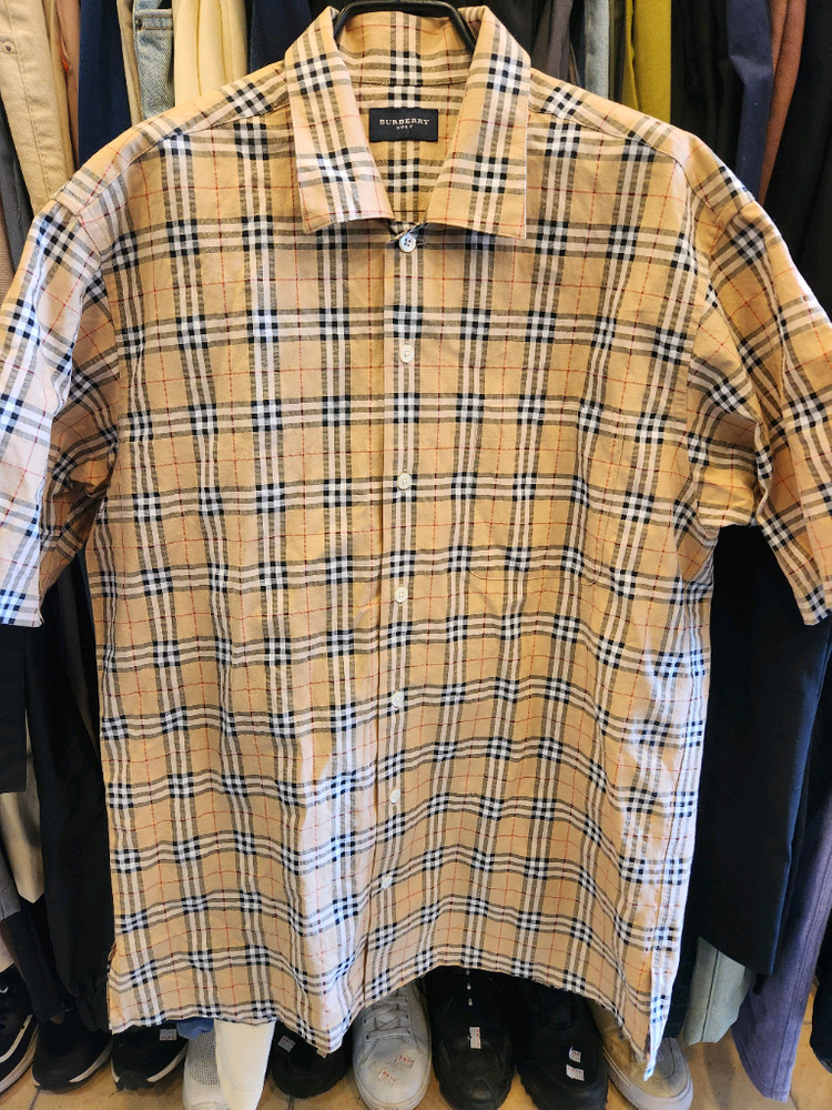 버버리 골프 라인의 시그니처 노바 체크 패턴이 돋보이는 반팔 셔츠예요 면과 폴리에스터 혼방 소재로 편안하게 착용 가능해요 사진에서 보이는 것처럼 깔끔한 디자인이 매력적이에요 클래식한 체크 패턴으로 어떤 하의와도 잘 어울려요 일본라이센스 제품 사이즈 M 실측사이즈 가슴반품 약 53센티 총장 약 73 센티 사이즈 사진확인해주세요 교환반품안되어요 색상및중고감안하여 신중구매부탁드려요 무리한에눌사양해요