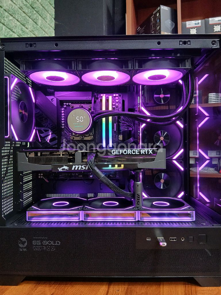 금일세팅된 게이밍 컴퓨터 & 검정가능 ( 국내정품 미사용 풀박스 구성 ) ▶️CPU : AMD 9800X3D ▶️GPU : MSI RTX5070TI 게이밍 트리오 ▶️M.B : 기가바이트 B850M 어로스 엘리트 와이파이 ▶️램 : 커세어 DDR5 6000Mhz 16x2 32GB ▶️저장장치 : 삼성 970 EVO PLUS M.2 SSD 2TB ( 유일한 중고 ) ▶️쿨러 : 발키리 GLA-360 수냉쿨러 ▶️파워 : EG GOLD 1000w 80plus 풀모튤러 ▶️케이스 : 마이크로닉스 ML-360 와이드 뷰 BTF ( 하단 리버스펜 3개 추가장착 ) 윈도우11 및 모든세팅완료 문의후 거래합니다. 0/0.30.75.50.90