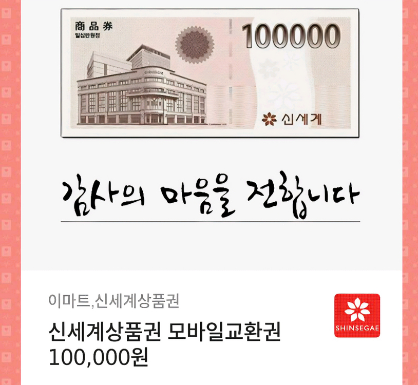 신세계백화점 모바일상품권 10만원권