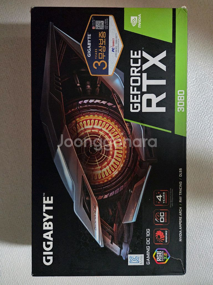 기가바이트 RTX 3080 게이밍 OC D6X 10GB 박스 구성품 그대로 가지고 있어요 as는 만료 광주광역시 직거래하며 택배거래도 가능합니다