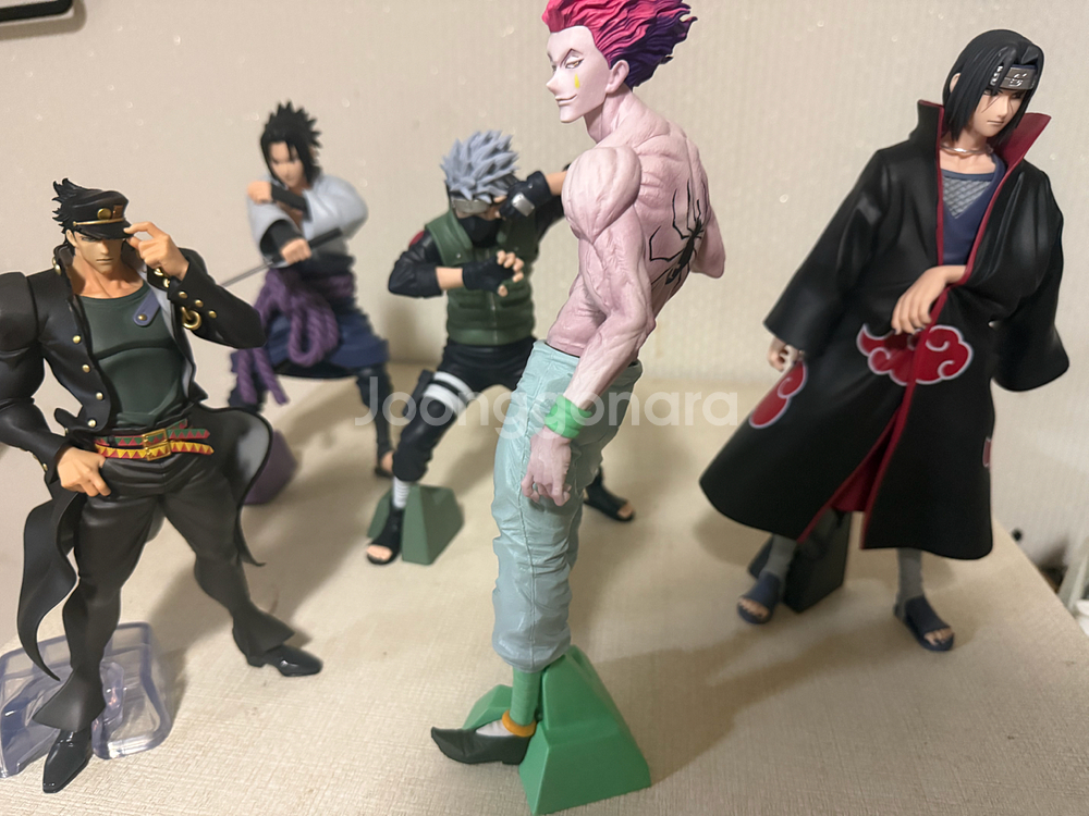 그란디스타 1달전에 구매한 피규어들 , 급전 필요해서 판매합니다. 전시만 한거라서, 딱히 하자는 없어요. 이타치 40000 사스케 20000 카카시 16000 히소카 32000 박스포함입니다. (히소카는 박스상태 안좋습니다.)