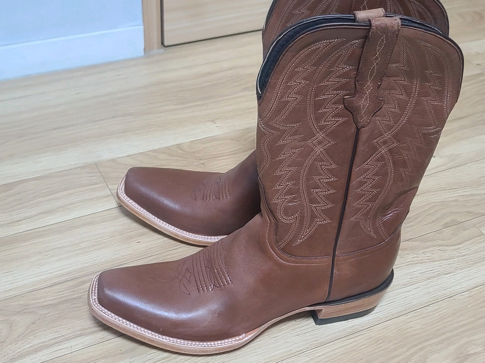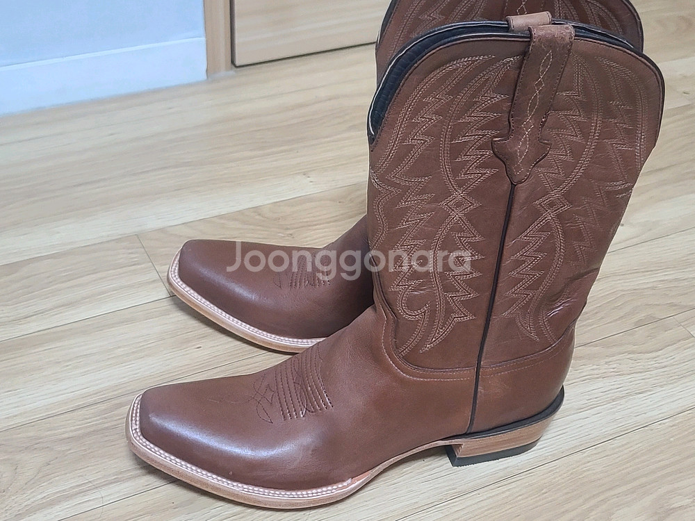 실제 카우보이 분들이 신고 작업하는 클래식한 RESISTOL 정품 웨스턴 남여공용 Made in U.S.A 카우보이 부츠 정품 입니다. 박스만 뜯어놓고 한번도 안신은 새상품입니다. 100% 미국 cow hide 소 생가죽 으로 만들어졌으며 사진에서 보시는 것처럼 매우 질기고 고급스러운 브라운 색상과 밑판 까지 섬세한 더블 스티칭 으로 마감되어있어 내구성 통기성 매우 좋습니다. 2년전 미국 여행때 기념품으로 구매했으나 박스만 뜯고 신을일 없어서 판매합니다. 완전 새상품 입니다. 사이즈는 11 D ( 285mm ~ 290mm ) 로 발 사이즈 좀 크신분들께 추천드리고 원래 발 사이즈 보다 살짝 크게 신으셔도 발목 위까지 덮어서 고정되는 구조라서 괜찮습니다. 방수도 완전 잘됩니다 !