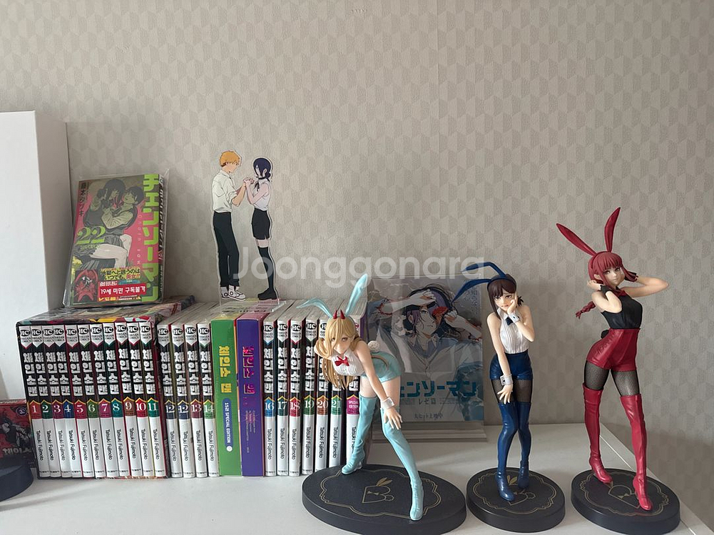 체인소맨 굿즈 일괄 판매합니다. 만화책 1권부터 22권까지 있고, 아크릴 스탠드와 바니걸 피규어 3종도 함께 드려요. 사진 보시고 구매결정 부탁드립니다! 문의 없으시면 바로 안전결제해주시면 됩니다! 한때 어렵게 구했던 상품으로 이번에 판매하면서 전체 판매합니다. 일괄로만 판매하고 박스 및 전체 보관중입니다. 책 같은 경우 스페셜에디션만 개봉 상태고 나머지 만화책은 비닐도 뜯지 않았습니다. 네고 가능하니 문의 주세요🌟