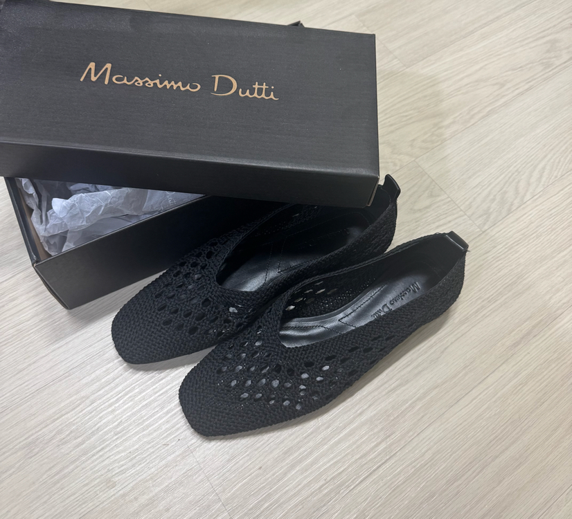 마시모두띠에서 나온 블랙 니트 플랫슈즈예요 사이즈는 37이고, 박스까지 풀구성으로 보내드려요 니트 소재로 시원하고 편안하게 신으실 수 있어요 구매하고 한번도 신지 않았고, 신발 바닥에 미끄럼방지까지 추가25,000해서 붙여두었습니다. 대략 240정도 사이즈로 알고 있습니다. 신지 않아 새신발이지만 중고상품이니 교환반품환불이 되지 않으니 신중하게 고민 후 연락주세요.