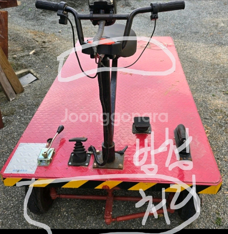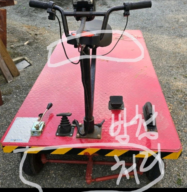 특성: 구루마처럼 작은거아닌 소형이 아닌 다마스급 대형 크기입니다 사용감은 거의없구 기능상 문제 전혀없이 잘 작동합니다. 사용횟수: 2번 크기 5*1.2m 속도 최대 10km내외 저속 상태 :새거 98% 밧데리사용 :총 3회 1시간내외 장소 하우스내보관 기타: 하부 방청페인트 작업완료창고바닥 700kg까지도 운반가능 거래 : 화물원하면 비대면 배송 착불 가격 : 구입 140만 판매 105만 *절충 : 톨비 내외