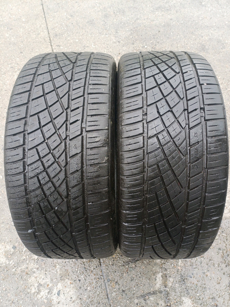 245 35 20 콘티넨탈 익스트림 콘택트 2본 판매합니다. 1. 타이어 모델명 : 콘티넨탈 익스트림 콘택트 2. 타이어 사이즈 : 245 35 20 3. 생산년도 : 23년 50주, 22년 47주 4. 잔존율 : 80% 5. 판매가격 : 1본 100,000원 / 2본 200,000원 6. 판매지역 : 김해시 주촌면 (장착비 포함 금액) 7. 무료배송 (제주도&산간지역은 추가금액 발생) (에어테스트 검수후 출고) (에어테스트 불량 일시 전액 환불) !! 최초 방문시 10,000원 할인 !!