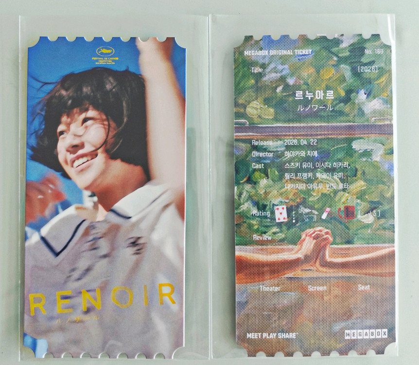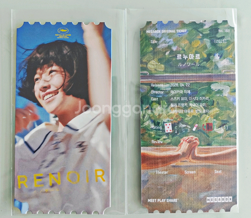 √ <르누아르 메가박스 오리지널 티켓> 2장 ※ 굿즈 크기 7 x 14 cm ※ 1장 6500원 / 2장 12,000원 √ 구매 취소 및 환불 불가 √ 계좌 입금만 가능 & 배송비 별도(반값택배 2300원) ※극장에서 안내하는 공정상 하자는 교환대상이 아니므로 이로 인한 교환 및 반품 불가※ 🟦 제 게시판의 다른 굿즈 구매시 할인 과 합배송 가능하니 많은 관심 바랍니다.💙