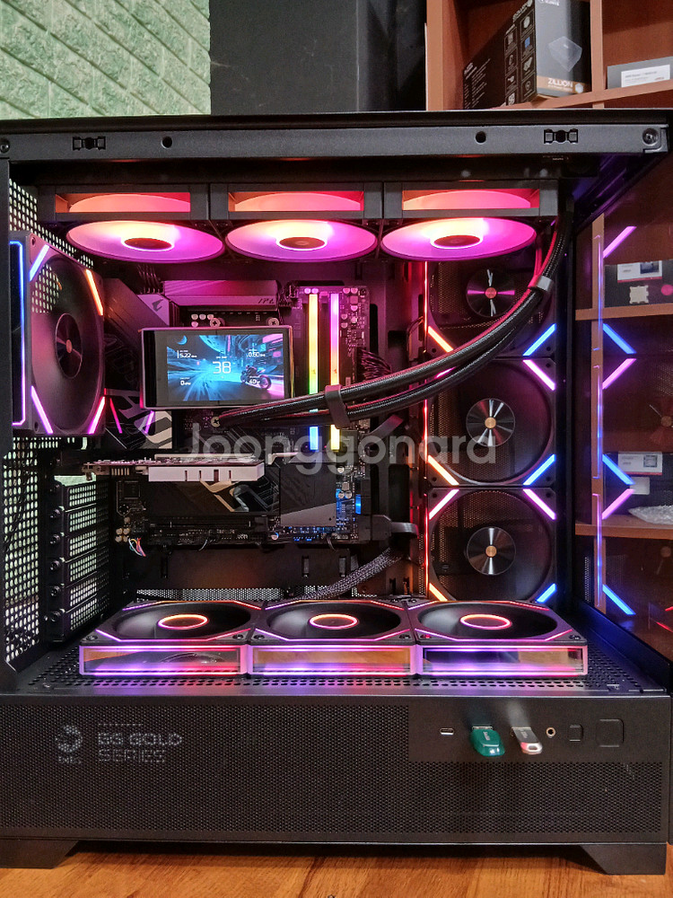 당일출고 ( 그래픽카드 제외 반본체 ) 미사용 게이밍 컴퓨터 ( 국내정품 풀박스 미사용 ) *CPU : AMD 9800X3D *GPU : X *M.B : 기가바이트 B850M 어로스 엘리트 와이파이 *램 : 커세어 DDR5 6000Mhz 16X2 32GB *저장장치 : 삼성 970 EVO PLUS 2TB ( 유일한 중고 ) *쿨러 : 리드쿨 LT360 VISION ARGB 수냉쿨러 *파워 : EG GOLD 1000w 80plus (변경가능) *케이스 : 마이크로닉스 ML-360 WIDE 뷰 BTF( 하단 리버스펜 3개 추가장착 ) 윈도우11 PRO ( 모든세팅완료 ) 배송방법 문의후 거래합니다 0/0.30.75.50.90