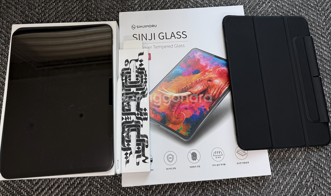 스페이스블랙 컬러입니다. 2025년 2월 20일 잠실 롯데월드몰 애플스토어에서 수령했습니다. 대학원 강의 필기용으로 구매했고, 실사용은 수,목 대학원 갈때만 사용했습니다. 애플케어플러스는 미가입상태입니다. 강화유리필름 부착해서 사용해서 아이패드에 직접적인 스크래치는 없습니다. 여분용 강화유리필름 1장 드려요. 접는 케이스 끼고 사용해서 외관에서 스크래치, 찍힘, 휘어짐 같은 하자는 아예 없습니다. 사정상 대학원을 1년 휴학하게 되어 판매합니다. 네고는 정중히 거절합니다.
