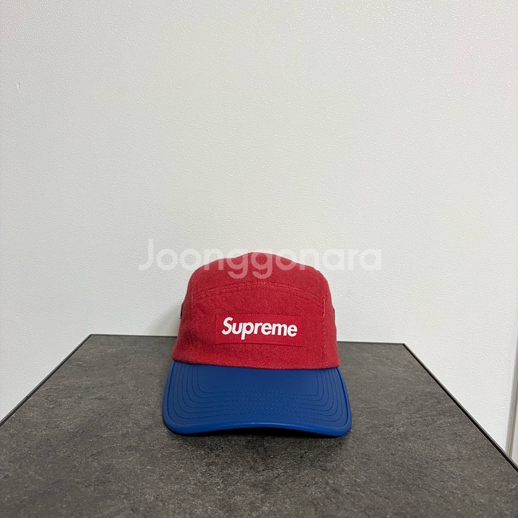 (OS) 슈프림 박스로고 캠프캡 모자 레더 바이저 레드 블루