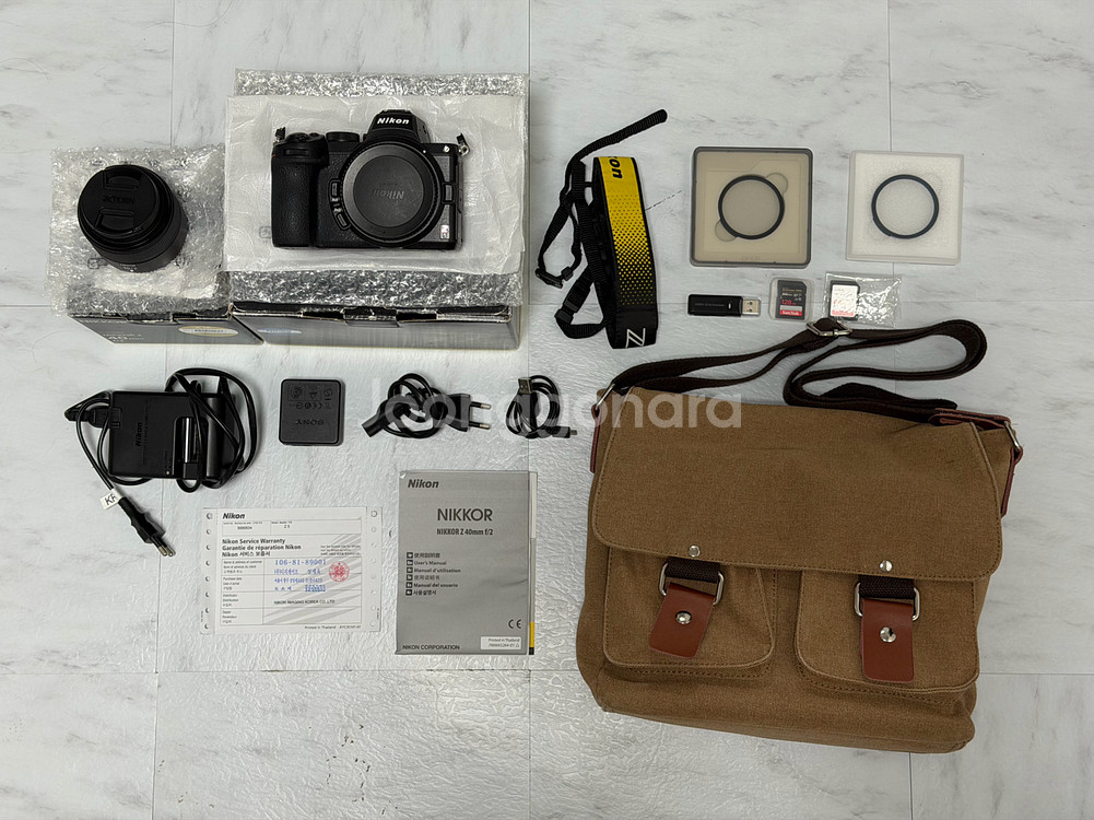 니콘 Z5 카메라와 40mm/f2 렌즈 풀세트입니다. 정품 충전기, 정품 스트랩, 카메라 가방, 미스트 필터, 크로스 필터, (SD카드) 128GB, 64GB, USB리더기, Z5 카메라 사용 설명서, 보증서(기한 만료됨) 등 빠짐없이 챙겨 드립니다. 🚨고가의 제품이니 직거래만 합니다. C타입 충전, 2슬롯, 손떨방 등 가성비 풀프레임 미러리스입니다. 취미생활로 즐기기 좋은 카메라이니 관심 있는 분들은 쪽지 주세요~