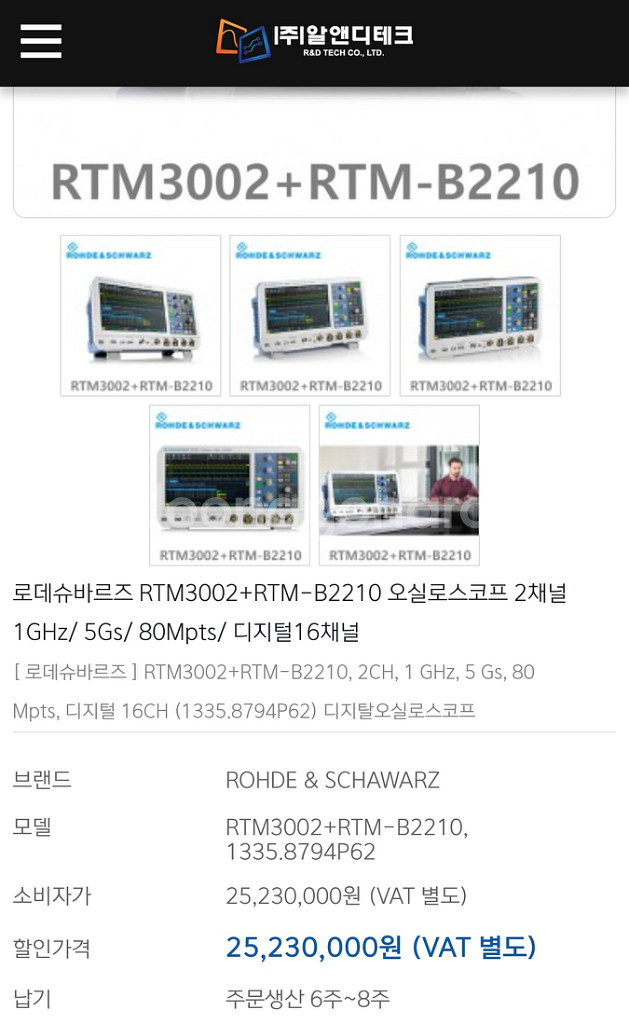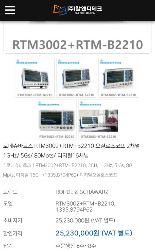 로데슈바르즈 RTM3002+RTM-B2210 오실로스코프 2채널 1GHz, 5Gs/s, 80Mpts, 디지털 16채널 제품입니다. 24년도 12월에 구매하였으며 무상 A/S 보증기간 1년~1년반정도 남았습니다. 사용하는 다른 계측기가 있어 실사용 횟수 5회 미만입니다. 깨끗하고 정품 박스도 다 있습니다.