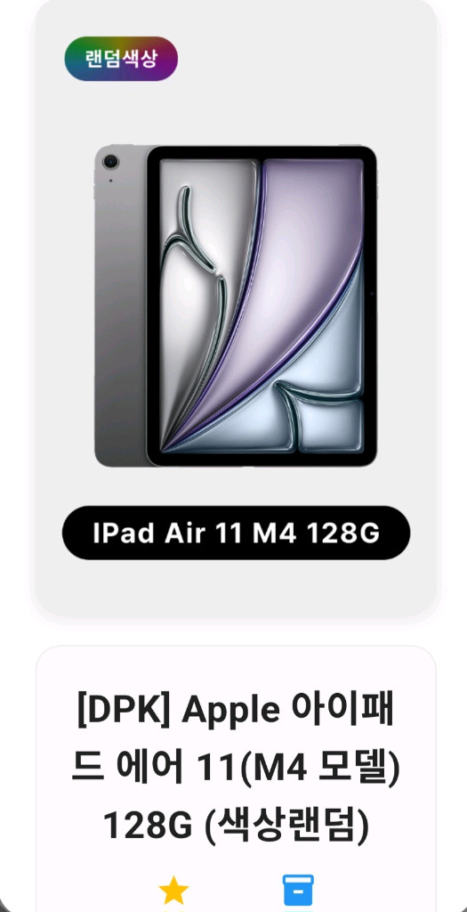 개인정보(거래정보)를 주고받는 행위는 사기에 노출될 수 있으므로 즉시 중고나라로 신고해 주세요미개봉 아이패드 에어11 m4 팝니다 색상은 랜덤이라 무슨색이 갈진모르겠습니다 주소지바꿔서 배송해드립니다 사기당하지말고 오세요 인증은 해달라는거 다 해드립니다 직거래도 가능은합니다 시간이 좀 걸릴거에요