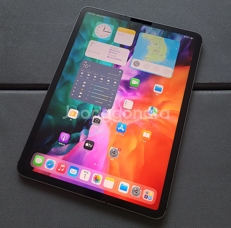애플 아이패드 프로 4세대 (11인치 기준 2세대 A12Z+6GB램) 128기가 스페이스 그레이 셀룰러 본체, 사진엔 없으나 케이스, 20w충전기입니다. 외관상태 준수한편이고 모든 기능 정상입니다. 배터리수명 88%입니다. 부산 광안리 직거래, 그 외지역 택배거래합니다.