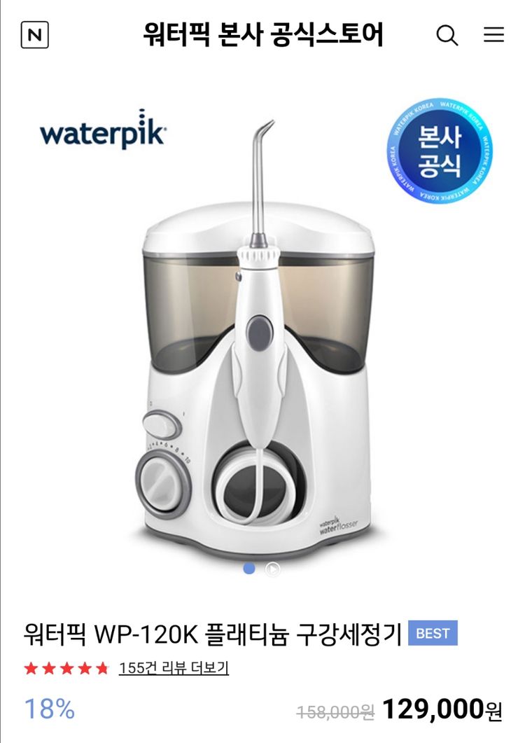 미국시장1위! 미국브랜드 워터픽 플래티늄 구강세정기 WP-120K 입니다. (치아 사이 구석구석 제거/ 잇몸관리에 도움) 거의 새상품으로 상태 아주 좋습니다.
