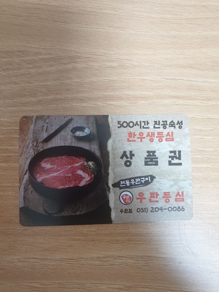 수원 우판등심 선불권팝니다 총20만원 충전되어있고 20프로 할인하여 16만원에 판매합니다 인천점도 사용가능합니다 수원 직거래원하고요 연락주세요 010 2943 공칠육오