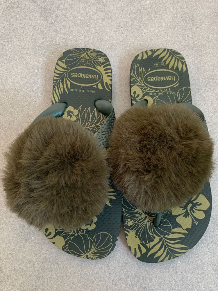 브라질 유명 쪼리 Havana 질 좋은 고무를 사용해서 오래오래 편하게 신는 여름 슬리퍼 모피방울을 사서 포인트를 더해봤어요.