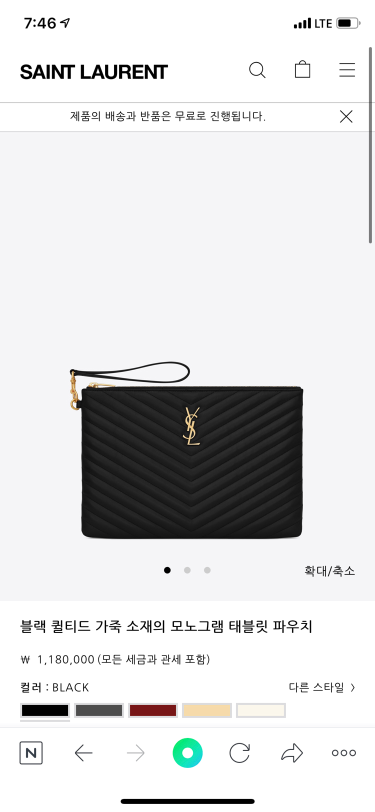 입생로랑 뉴미듐클러치 은장