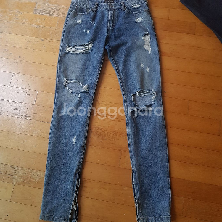 이 바지로 말할것 같으면 한때 홍대에서 옷좀 입는다 하는 녀석들이라면 한번씩은 들어본 부르즈수르트의 청바지이며.. 발매하는 족족 품절나서 수차례 재입고 했던 바지입니다 국내브랜드에선 절대 접할 수 없는 재질로써 리얼 어메리컨 바이커를 위한 청바지 느낌이 손끝에 닿는순간 느껴집니다 그만큼 색감도 정말 좋은데 사진을 못찍어서 그나마 마지막 사진이 실물 색감에 가깝네요 보시다시피 밑단에 지퍼가 달려있고 사진처럼 주름잡아 입는거라 기장이 깁니다. 또는 지퍼를 열고 입어도 되는거라 한창 이지부스트가 유행할때 핫했었죠 바지 사이즈는 L이고 제가 평소 청바지를 31~32입는데 딱 맞습니다 스판끼는 없고 빳빳한, 타협따위 없는 ㄹㅇ거친 청바지 그자체이니 주의해주시구요 왜 이걸 내놓냐면 지금은 단정하게 입고다니는데 여친이 이걸보면 제 과거를 들킬것 같아 내놓습니다 안팔리면 각오하고 입을생각입니다