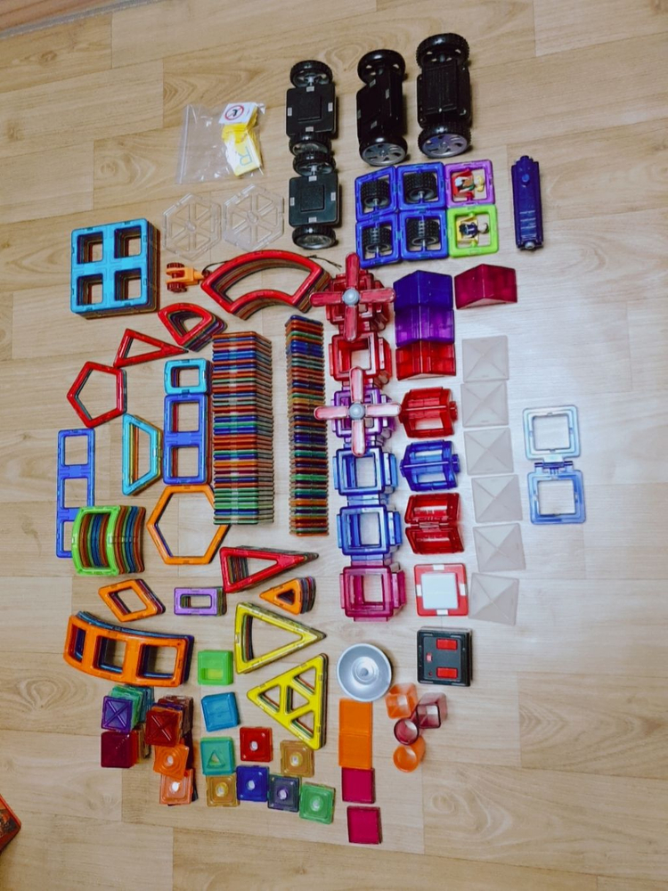 맥포머스 미라클 브레인 팝니다 교구는 깨끗한 편이지만 책은 사용감 있습니다 그리고 부직포 보관박스가 찢어져서 종이상자에 넣었습니다 구입할 때 40만원 정도 줬었는데 요즘엔 30정도 즈음 이네요 세어보지 않아 교구 몇개 없을 수도 있어 저렴하게 내 놓습니다 예민맘은 사양합니다 배송비포함 9만원 입니다 010 9343 8801 문자주세요